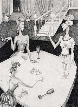 Piešiniuose vaizduoti gyvūnai – judesyje „Man nėra lengva apie ją kalbėti, juolab yra prašiusi apie ją niekam nepasakoti. Tai buvo, regis, taip seniai. Nuo mažumės ji turėjo išvystytą humoro jausmą, piešė gana šviesius ir linksmus piešinius. Jos piešti gyvūnai visuomet judesyje. Man visi jos paveikslai artimi, tarsi vaikai ar anūkai, bet labiausiai į širdį kritęs yra paveikslas „Kryžių dama“, kuriame pavaizduotos trys prie stalo sėdinčios ir kortomis žaidžiančios damos. Ten tiek paslėptų prasmių, žinoma, yra ir ypatinga to paveikslo istorija. Aš iki šiol negaliu atsistebėti, kaip ji sugalvojo tas moterų šukuosenas, drabužius, kaip išgvildeno idėją“, – nuostabos neslėpė R. Baltušytė, prisipažinusi, kad kiekvienas, bent kiek susipažinęs su A. Zavišaitės darbais, turi savo paveikslą favoritą. Per pokalbį pašnekovė paminėjo, kad jai namuose esantys Akvilės piešti eskizai, kurių, ruošiantis tapyti konkretų paveikslą, sukurta begalės, kartais yra daug įdomesni ir iškalbingesni už patį paveikslą.