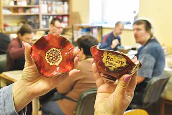 Dirbtuvėms statys priestatą Socialinių dirbtuvių lankytojai patys savo rankdarbiais prekiauja miesto mugėse, jų gaminių galima įsigyti ir atvykus į Dienos veiklos centrą. „Gaminių formos ir modeliai yra vienetiniai – dviejų visiškai vienodų nebūna, ir tuo originalūs. Nuolat rengiame parodas, šios jau apkeliavo kone visas rajono kultūros ir švietimo įstaigas, pabuvojome ir Seime. Čia pat, centro dirbtuvėse, rengiame ir edukacijas – norintys išmokti keramikos amato, gali atvykti pavieniui ar grupėmis“, – platesnės veiklos sritis nušvietė A. Venckienė. Socialinių dirbtuvių veikla, akcentavo ji, plečiasi ir jau nebeišsitenka dabartinėse Dienos veiklos centro patalpose, todėl yra numatyta pastatyti 70 kv. m ploto specialiai tam pritaikytą priestatą. --- Verslininkus ar privačius asmenis, galinčius pakviesti į darbą socialinių dirbtuvių lankytojus – grupėmis ar pavieniui – užimtumo specialistė Asta Venckienė prašo skambinti tel. 0 612 07915 arba 0 615 78316. O asmenų, norinčių lankyti socialines dirbtuves, artimieji turėtų kreiptis į Kretingos rajono savivaldybės Socialinės paramos skyrių.