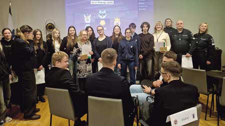 Tikrino žinias Dar vienas renginys įvyko Kretingos rajono savivaldybės M. Valančiaus viešojoje bibliotekoje. Ten vyko moksleivių konkursas „Aš ir policija 2026“. Renginyje dalyvavo įvairių mokyklų mokiniai, kurie turėjo galimybę pasitikrinti savo žinias apie saugumą, teisę ir atsakingą elgesį. Gimnazijai atstovavo keturios mokinių komandos, kurias lydėjo karjeros specialistė Alma Slaboševičienė ir socialinė pedagogė Daiva Firantienė. Konkursas ne tik patikrino mokinių žinias, bet ir suteikė gimnazijos mokiniams puikią galimybę ugdyti prevencinį mąstymą, stiprinti atsakomybės jausmą bei saugumo įgūdžius. Tokie renginiai yra labai svarbūs, nes skatina jaunimą domėtis visuomenės saugumu, atsakingai elgtis kasdienėse situacijose ir geriau suprasti policijos darbo svarbą. Mažųjų mokslininkų atradimai Kovą gimnazijos Gamtos mokslų centre lankėsi lopšelio-darželio „Žilvitis“ priešmokyklinukai. Juos pasitiko biologijos ir chemijos mokytojas Edvinas Piktuižis, kuris vedė smagų ir įtraukiantį užsiėmimą „Mažųjų mokslininkų atradimai: gėlės iš filtrinio popieriaus“. Kūrybinio eksperimento metu vaikai išbandė save mažųjų mokslininkų vaidmenyje – jie žaidė su spalvomis ir stebėjo, kaip paprastas filtrinis popierius „pražysta“ gelsvais, žalsvais ir raudonais atspalviais. Ši veikla ne tik suteikė daug džiaugsmo, bet ir padėjo geriau suprasti spalvų maišymosi procesus. Iš laboratorijos mažieji išvyko kupini įspūdžių, rankose laikydami Lietuvos vėliavos spalvų gėlę. Kuo pi svarbus matematikoje Kovo viduryje I gimnazijos klasių mokiniams vyko matematikos pamoka „Pi (iracionalusis skaičius) skaičiaus ir apskritimo savybių tyrimas“, skirta pi dienai paminėti. Pamoką vedė matematikos mokytojai E. Stalmokienė, R. Mineikienė, A. Aniulis. Pamoka prasidėjo vaizdo įrašu apie pi istoriją ir reikšmę. Vėliau mokiniai atliko užduotis, kartojo apskritimo savybes bei praktiškai matavo apvalius objektus, įsitikindami, kad perimetro ir skersmens santykis yra artimas pi. Pamokos pabaigoje mokiniai pristatė rezultatus ir aptarė, kuo pi svarbus matematikoje.