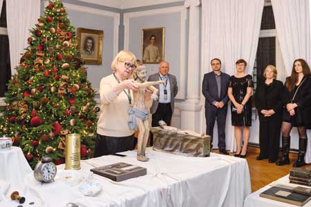 Svečiai buvo pakviesti į Baltąją salę apžiūrėti pačius naujausius, per praeinančius metus muziejui dovanotus eksponatus: senųjų liaudies meistrų rankomis sukurtas vertybes iš Laukžemės ir Kalnalio bažnyčių, kretingiškio bajoro Jotvingių kryžiaus ordino riterio Leopoldo Eduardo Rimgailos šeimos relikvijas, kaunietės Rasos Eugenijos Čižinauskaitės dovanotą sidabrinį šaukštą su grafų Tiškevičių monograma ir kitas iš privačių asmenų įsigytas vertybes.
