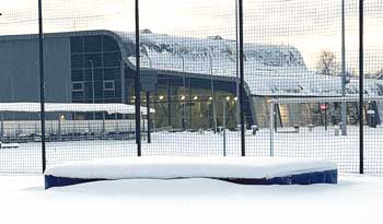 Šuolio į aukštį sektoriaus čiužinys po sniegu
