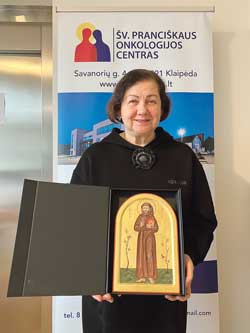 Pirmosios Lietuvoje onkobendruomenės įkūrėjai ir jos vadovei Aldonai Kerpytei broliai pranciškonai dėkodami įteikė Šv. Pranciškaus ikoną.