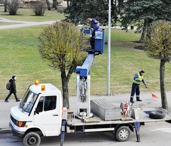 Darbus atlieka Savivaldybės įmonės „Kretingos komunalininkas“ bokštelio specialistas bei rajono Socialinių paslaugų ir sveikatos skyriaus siųstas socialinės pašalpos gavėjas. Pasak bendrovės Miesto tvarkymo skyriaus vyriausiojo vadybininko Stasio Perkausko, medžiai genimi už Kretingos miesto seniūnijos lėšas. Darbai truks dvi savaites.