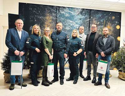 Nuotraukoje – Kretingos rajono policijos komisariato policijos rėmėjai ir pareigūnai: (iš kairės) Andrius Bertašius, bendruomenės pareigūnė Gitana Macienė, Indrė Tautavičienė, komisariato viršininkas Algirdas Budginas, bendruomenės pareigūnė Silvija Šilinskė, Mindaugas Tautavičius, Romandas Žiubrys, Arūnas Trijonis.