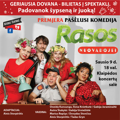 Po Lietuvą turą pradeda subtiliu, intelektualiu humoru prisodrinta „Kitokio teatro“ komedija „Rasos nuovadoje“ – sukurta pagal žiūrovų pamėgtus ir lankomumo rekordus sumušusius spektaklius „(Ne)galiu tylėti“ ir „(Ne)galiu mylėti. Šventė tęsiasi“.