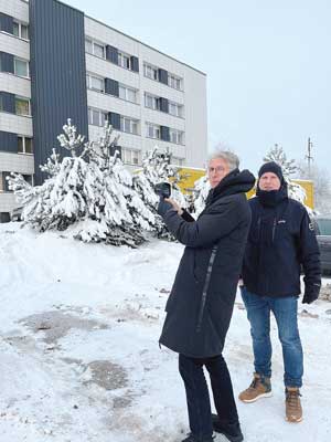 Dalies miesto daugiabučių Birutės, Klaipėdos, Lazdynų, Savanorių, Pasieniečių gatvėse pirmininkas Albertas Butenis ir bendrovės „Kretingos šilumos tinklai“ vartotojų aptarnavimo grupės vadovas Algirdas Švėgžda dieną tyrimams, leidžiantiems pamatyti ne tik pastato šiluminės izoliacijos trūkumus, atskirų zonų šilumos nuostolius, galbūt ir statybos darbų broką, pasirinko tinkamą – lauke vyravo 10 laipsnių šaltis.
