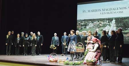 Pinant tradicinius vainikus, renginio vedėja Raimonda Mockuvienė (centre) į sceną bendrai sugiedoti Šv. Magdalenos giesmę kvietė Klaipėdos krašto pučiamųjų grupę ir Kretingos rajono kultūros centro mišrųjį chorą „Kristale“.