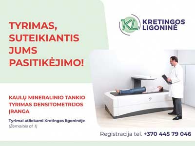 Gera žinia su mūsų ir aplinkinių rajonų gyventojais dalinasi Kretingos ligoninė – įsigijus modernią densitometrijos įrangą, kaulų mineralinio tankio tyrimai atliekami čia pat, Kretingos ligoninėje. „Iki šiol mūsų pacientams dėl šio tyrimo tekdavo važiuoti į uostamiesčio klinikas, o tai užtęsdavo laiką gydytojams priimti sprendimus dėl galutinės diagnozės“, – viename rajono Tarybos Sveikatos apsaugos ir socialinių reikalų posėdžių, pristatydamas ligoninės pažangą, kalbėjo šios gydymo įstaigos vyriausiasis gydytojas Romaldas Sakalauskas. Pacientų patogumui įranga sumontuota Kretingos pirminės sveikatos priežiūros centro I aukšte, kur veikia rentgeno kabinetas. Norint atlikti tyrimą, būtina turėti šeimos gydytojo arba gydytojo specialisto siuntimą – pacientams, turintiems gydytojo siuntimą radiologo konsultacijai, paslauga teikiama nemokamai. Privalomuoju sveikatos draudimu nedraustiems asmenims arba neturintiems siuntimo, paslauga yra mokama. Kiek dažnai – kas pusmetį, kas metus ar kas dvejus – reikėtų atlikti šį tyrimą, sprendžia pacientą stebintis gydytojas. Kodėl kaulų tankio tyrimas yra svarbus Kaulų mineralinio tankio tyrimas – vienas tiksliausių metodų osteoporozei nustatyti ir gydymo efektyvumui įvertinti. Osteoporozė dažniausiai pasireiškia pomenopauzinio amžiaus moterims, tačiau gali būti diagnozuojama ir vyrams. Kaulų mineralinis tankis – tai vienintelis kiekybinis žymuo, objektyviai ir tiksliai nusakantis kaulų masę. Tai kliniškai labai svarbus tyrimas, leidžianti įvertinti kaulų lūžių rizikos padidėjimą, šis tyrimas padeda nustatyti osteoporozę – ligą, kuri pakeičia kaulų struktūrą ir kokybę, dėl ko sumažėja kaulų stiprumas, įvyksta ir grėsmingų kaulų lūžių. Medikų tvirtinimu, negydoma osteoporozė sukelia savaiminius stuburo slankstelių, kojų ir kitų kaulų lūžius. Mažėjantį kaulų tankį būtina nustatyti kuo anksčiau, kad laiku būtų galima paskirti profilaktines priemones kauliniam audiniui atkurti, sustiprinti ir išvengti osteoporozės komplikacijų.