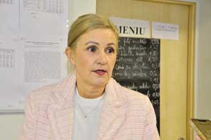 Talkina ir vairuotojai, ir valytojos Iš Darbėnų miestelio valgytojai nekviečiami, nes nepajėgtų aptarnauti, tačiau, jeigu žmonės pamatytų aplinką, išties nustebtų: maloniai nuteikia šviesios augalų motyvais Auksės dekoruotos sienos, šviestuvai virš už tėvų pinigus įrengto baro su pritaikytomis aukštomis kėdėmis. Tėvų atstovė B. Jurgutienė užsiminė, kad tai dar – ne pabaiga: vizijoje – valgyklos erdvę praplečianti įstiklinta terasa su žiemos sodu, kur vaikai galėtų pabūti, pailsėti. Paklausta, kiek stiklinė terasa realu, direktorė teigė, kad prieš 10 metų buvo nerealu mokyklai grįžti ir prie savarankiško maitinimo. Pirmų – antrų klasių mokiniams keletas stalų sustumti, o ant jų estetiškai sudėliotos lėkštės, įrankiai, puodai su tądien, kai lankėmės, patiekta trinta morkų sriuba, vištienos maltinukais, vaisiais. Kad nebūtų švaistomas maistas, sriubos įpilama tik tiems mokinukams, kurie jos valgys. Likutis visada paliekamas puode – kas nori, gali ateiti vėliau ir įsipilti. „Esu mačiusi, kad sriubos nemokamai pavalgyti ateina praalkę vaikai, po pamokų laukiantys, kol prasidės užsiėmimai būreliuose“, – sakė S. Litvinienė. Jeigu virtuvėje suktųsi tik vien trys virėjos su pagalbine darbuotoja Regina Giedriene, tai, kaip teigė direktorė, joms neužtektų nei laiko, nei rankų indams plauti, stalus nuvalyti – valgytojų, įskaičiavus Darbėnų ir Grūšlaukės ikimokyklinio ugdymo skyrius, yra apie 300–400 kartu su privalomą valstybės kompensuojamą maitinimą gaunančiais pradinukais ir nemokamą maitinimą gaunančiais vyresniais moksleiviais, kurie neretai paprašo dar ir antros porcijos. Virtuvės padėjėjos R. Giedrienės sudėtas karštas šviežiai pagamintas maistas į Darbėnų ir Grūšlaukės skyrius keliauja termosuose, kuriuos geranoriškai išvežioja mokyklos geltonųjų autobusiukų vairuotojai. Be to, nuo 10.30 val. valgykloje kiekvieną pertrauką budi valytojos, kurios padeda nuvalyti stalus. „Daugiau etatų Savivaldybė dotuoti negali, o juk kažkas tuos darbus turi padaryti. Džiaugiuosi, kad mūsų darbuotojai yra tokie supratingi“, – kalbėjo S. Litvinienė.