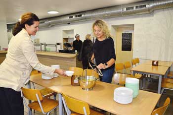 Vasaros nerimą išsklaidė eilės Pašnekovių žodžiais, tėvai itin didelio palaikymo sulaukė iš gimnazijos direktorės S. Litvinienės, o ji savo ruožtu teigė, jog savarankiško maitinimo mokykloje šiandien nebūtų, jeigu ne iniciatyvi bendruomenė, ne į kumštį susitelkę žmonės. Direktorės žodžiais, ūkio dalies vedėja Dalia Stonkuvienė išties atliko misiją neįmanomą – valgyklą sugebėjo įkurti per du mėnesius. „Jai pavyko surasti puikias santechnikų, dažytojų, elektrikų komandas... Toks jausmas, kad ir šie žmonės dirbo kaip dėl savo vaikų, negailėdami nei laisvalaikio, nei savaitgalių, žinojo, kad iki rugpjūčio vidurio valgyklą privalo pabaigti“, – pasakojo gimnazijos vadovė. Bet vasarą, sakė, ir ją aplankydavo košmariškos mintys: tiek investuota lėšų – o jeigu vaikai neis į valgyklą valgyti? Bet, kai rugsėjo pradžioje pamatė eiles ir kad tos eilės lig šiol nemažėja, kad moksleiviai, kurie mokykloje būna iki trečios ar ketvirtos valandos, gauna skanų šiltą maistą, širdis negali nesidžiaugti. „Didžiuojuosi ir mūsų valgyklos darbuotojomis“, – atviravo S. Litvinienė. Anot jos, vyriausioji virėja Regina Rimkuvienė pati būdama penkių vaikų mama stengiasi gaminti kaip savo vaikams. Raimonda Pudžmienė turi apie 20 metų virėjos darbo patirtį, taip pat šauniai į kolektyvą įsiliejo seniau Piliakalnio mokyklos valgykloje dirbusi Lina Narkienė. Darbus virėjos pasiskirsto: jeigu viena verda sriubą, tai kita ruošia daržoves, trečia kepa kepsnius ar kotletus, gamina troškinius.