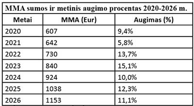 Aurelija Maldutytė, Lietuvos darbdavių konfederacijos prezidentė: – Yra buvę svarstymų dėl MMA diferencijavimo regionuose, tačiau pagrindinis motyvas to nedaryti – regionų gyventojai negali gyventi prasčiau. Vis dėlto būtina pripažinti, kad MMA skaičiavimo formulė, taikoma nuo 2017 metų, nebeatitinka šiandieninės ekonominės realybės, o jos kilimas dviženkliais procentais yra per spartus. Tarptautinės organizacijos ne kartą atkreipė dėmesį, kad Lietuvoje darbo našumas neauga taip greit kaip atlyginimai. Pagal atlyginimams skiriamą pajamų dalį esame aukščiau ES vidurkio, taigi verslas nepiktnaudžiauja. Šiemet trišalės tarybos formate siūlėme MMA nedidinti, užšaldyti – pažiūrėti, kiek darbo užmokestis didės natūraliai. Deja, šis siūlymas nebuvo išgirstas, net ir pačioje verslo bendruomenėje nuomonės išsiskiria. Valstybės skatinamos kurti aukštos pridėtinės vertės ekonomiką – kai gamyba yra inovatyvi, automatizuota, o darbuotojai kuria pažangius, brangesnius produktus. Tačiau Lietuvoje matome priešingą efektą – keliame MMA, bet algas gaunantieji nuo to vertės daugiau nesukuria. Valgyklos virėja nuo to nepagamina daugiau maisto, nepritraukia daugiau klientų, o tik padidina savikainą. Tad natūralu, kad ir duona, ir pienas po kiekvieno MMA kilimo kainuoja daugiau. Labiausiai skaudu, kad iš valstybės nematome lygiaverčio solidarumo. Verslui keliami didesni reikalavimai – didinti atlyginimus, susimesti gynybos finansavimui (ko tikrai nekvestionuojame), prisitaikyti. Tačiau tuo pat metu biurokratinis aparatas didėja. Šiemet nauja Vyriausybė darbuotojų skaičių savo ministerijose padidino 4,1 proc., arba 160-ia darbuotojų, – tai prilygsta dar vienos ministerijos atsiradimui. Tai nuvilia. Norėtųsi matyti, kad valstybė taip pat veržiasi diržus, kaip tai daro verslas.