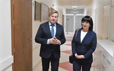 Kretingos rajono savivaldybės vicemerė Vaida Jakumienė ir Kretingos rajono ligoninės vadovas Romaldas Sakalauskas pasidžiaugė atnaujintomis Slaugos ir palaikomojo skyriaus patalpomis ir įranga.